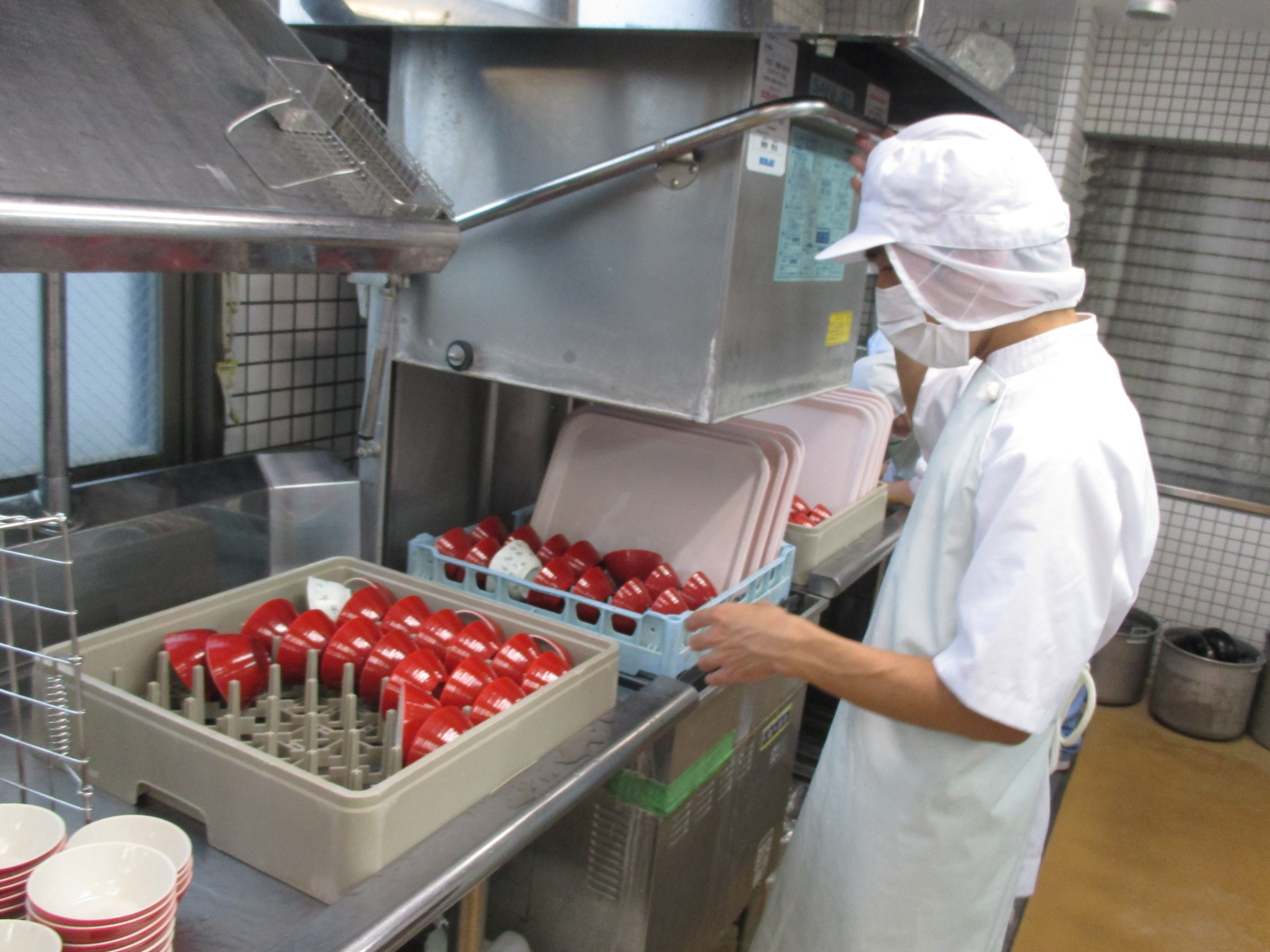 山科合同福祉センター内で出されている給食サービスの一部(食器洗浄等)に携わらせていただいています。